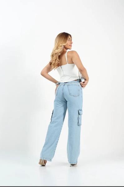 CALÇA JEANS WIDE LEG CARGO COM BOLSO SANFONADO